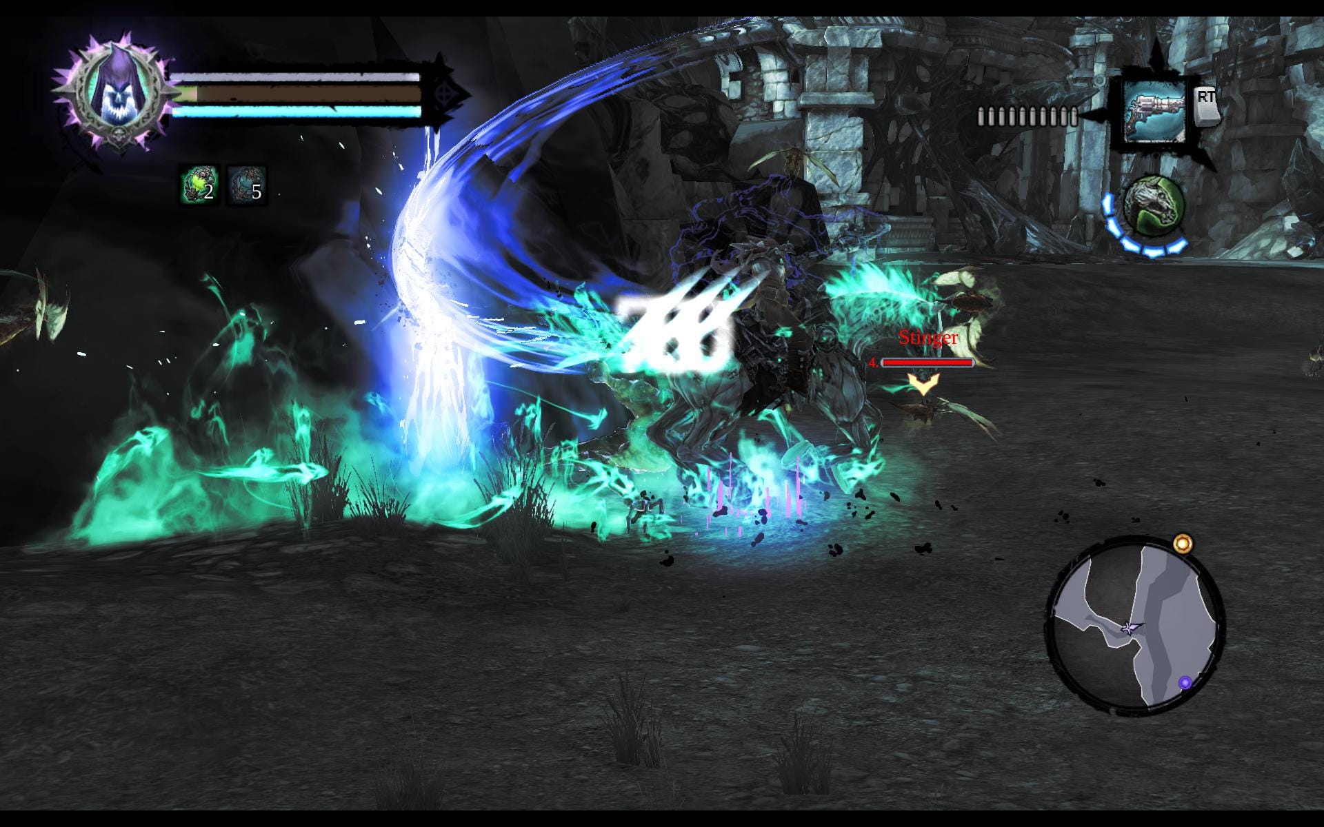 For all the improvements in mobility and depth, the combat sometimes felt frustratingly chaotic. The camera often struggles to keep up, especially in enclosed areas or when multiple enemies are attacking from all sides. I found myself taking hits I couldn’t see coming, or losing track of where Death even was in the middle of particle effects and flailing enemy limbs (see above image for a great example). Lock-on helps a bit, but not enough to fix the core issue: the combat lacks clarity during intense encounters. It is extremely disappointing because Death has so many cool weapons and abilities, but using those things in combat becomes a big downer due to the lack of visibility.